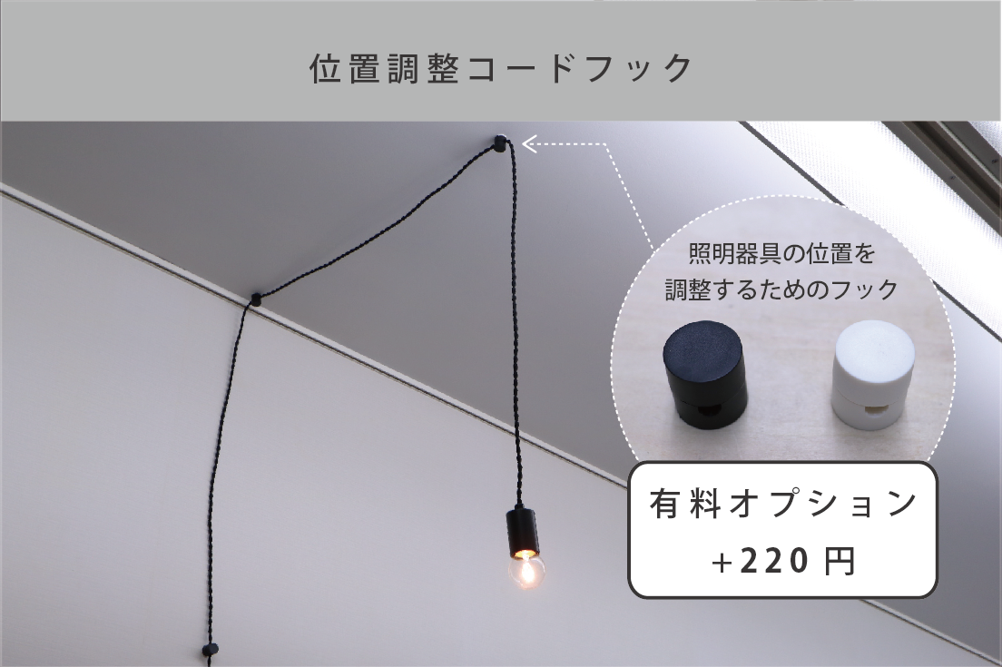 ソケットランプ用コードフック/位置調整フック(白or黒)220円(内税)