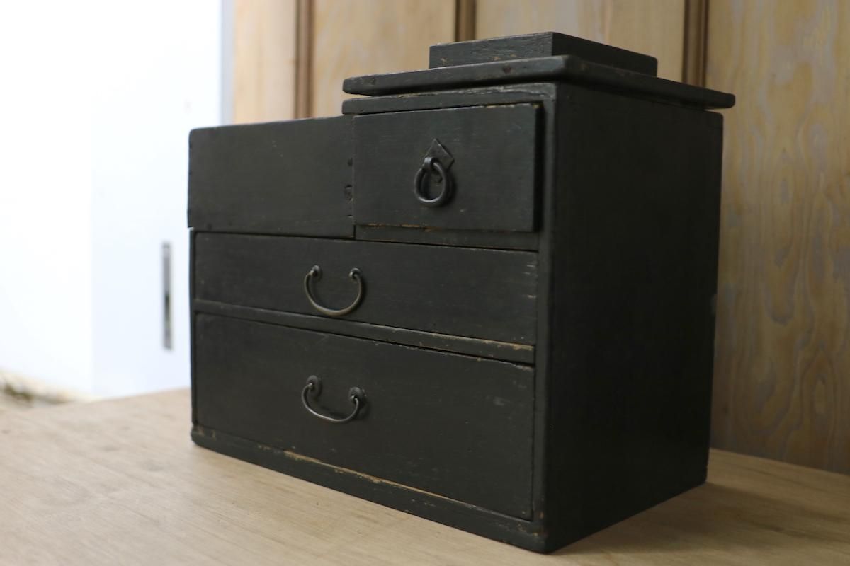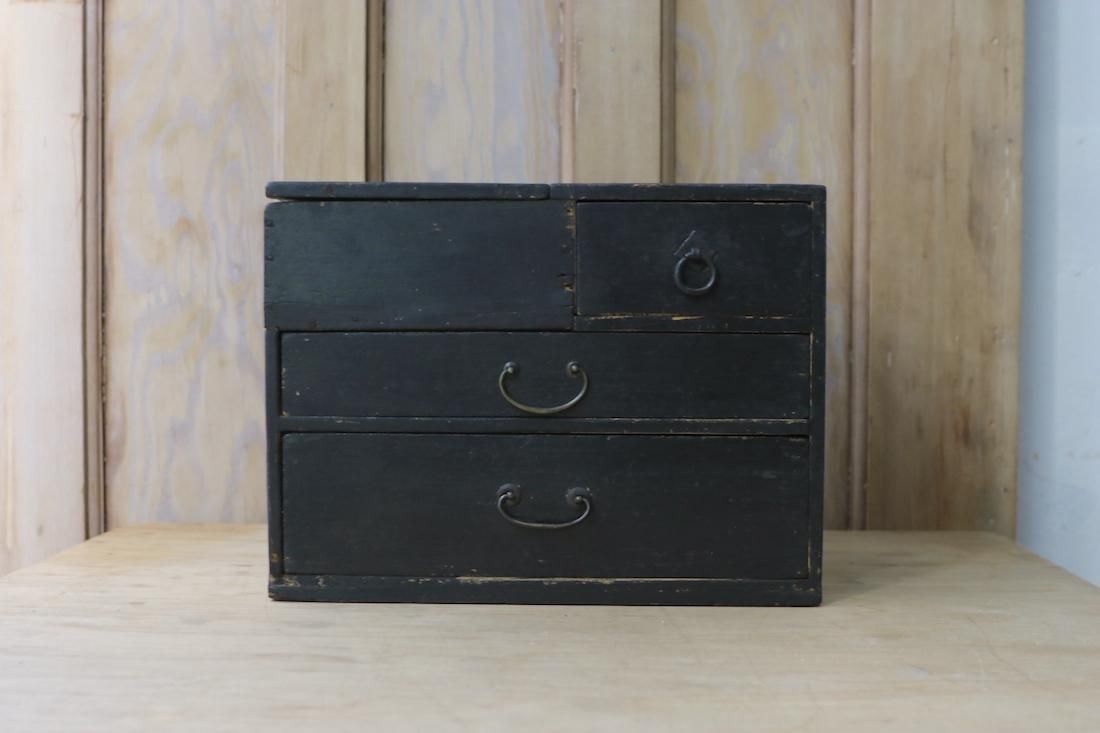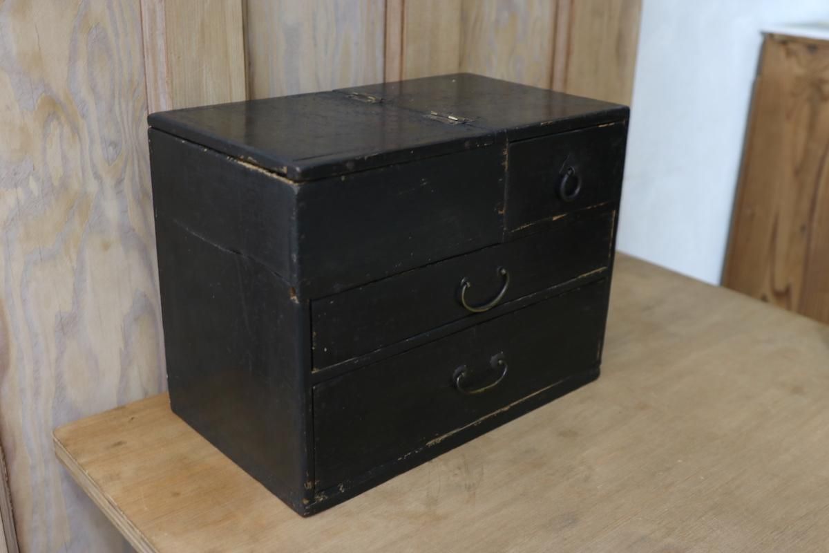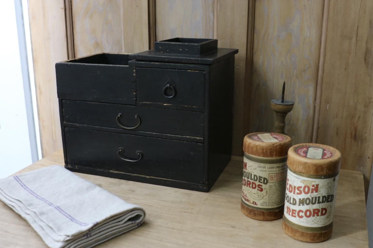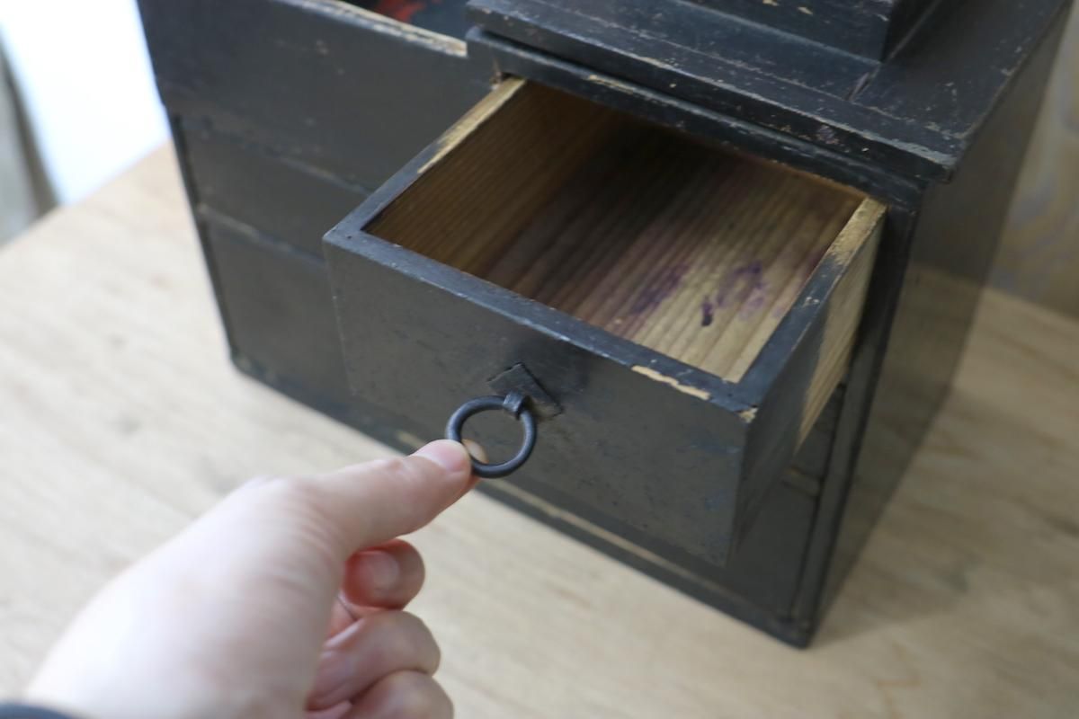 昭和レトロ小引出し/裁縫箱/黒/w28×d16×h21cm