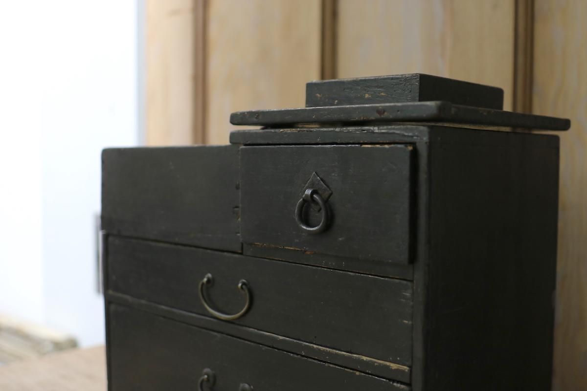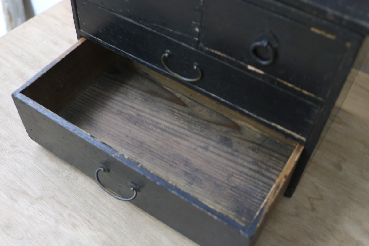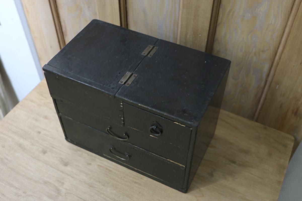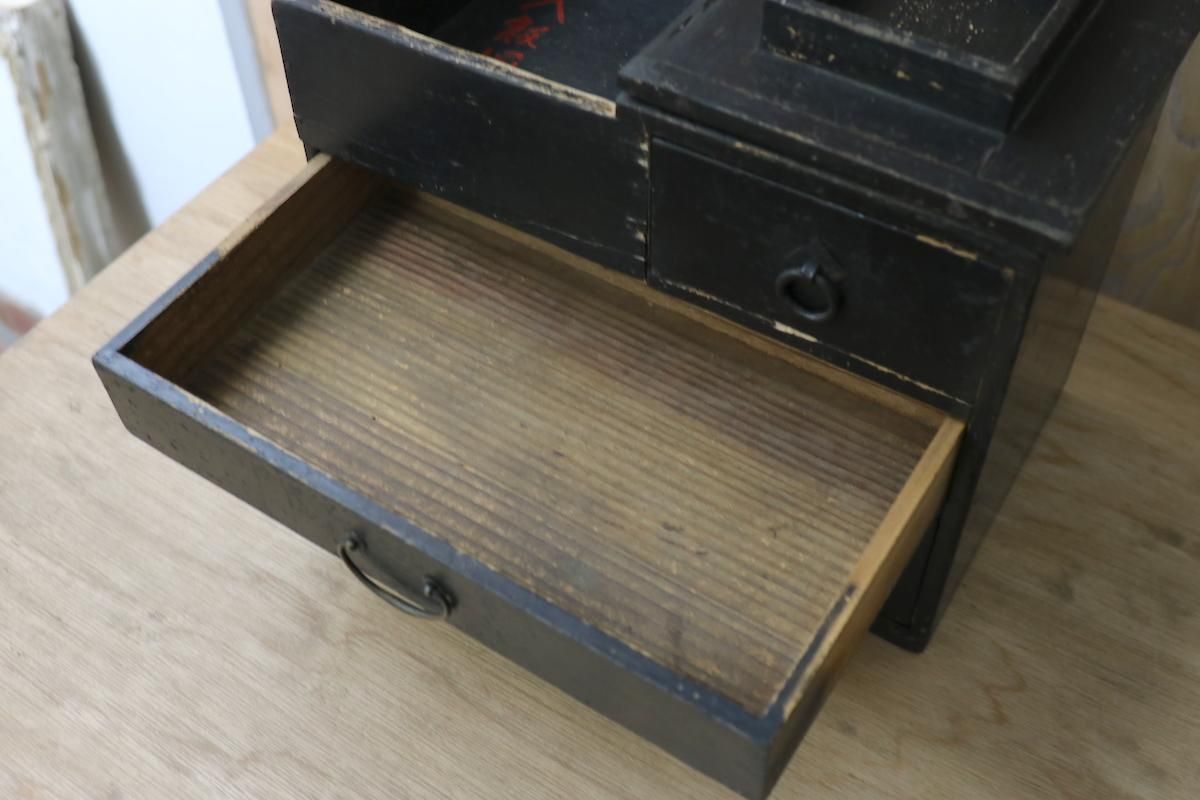 昭和レトロ小引出し/裁縫箱/黒/w28×d16×h21cm