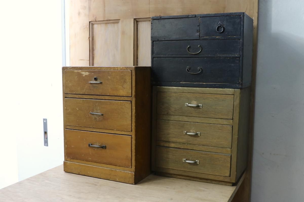 昭和レトロな小引き出し(裁縫箱)をご紹介します。 一番上はフタをパタンと開けて、そのまま裁縫ができるように作られています。中に書き込まれた文字も、まさに日本の骨董品といった雰囲気で趣きを感じます。黒い塗装がシックな佇まいなので、アンティークな空間だけでなく意外と現代の空間に置いてもかっこいいです。 引き出しのスムーズな開閉も快適です。取手の金具も繊細で可愛らしく、細かいものや道具を収納するのに最適なアイテムです。 ハンドメイドや手芸がお好きな方におすすめなのはもちろん、デスク周りの小物収納や、お店の什器としても重宝すること間違いなしです。 是非、レトロな魅力溢れるこの小引出しを使って、日常の中でどこか懐かしい心温まるひとときをお楽しみください。 <取り扱い注意事項> - 直射日光や高温多湿の場所での保管は避け、色あせや変形の原因となります。 - 引き出しを強く閉じると壊れる恐れがあるため、開閉には十分注意してご使用ください。 サイズ:W28,D16,H21cm 一番上の内寸:W13,D14.5,H5.5cm 中段の内寸 :W24.5,D14,H3.5cm 下段の内寸 :W24.5,D14,H6.5cm 素材・色:古木、黒 状態:アンティーク 備考 注意事項 品質に関する注意事項 ※昭和に使用されていた古いものですので、表面には傷や汚れがあります。 古い物が好きな方にお勧めします。 他のものとの同梱が難しい場合があります。 日曜日、祝日の発送業務は行っておりません。 北海道、沖縄など、日数がかかる地域もございます。 古家具扱いとなりますので、他の商品と合算された場合でも、送料無料の対象外となります。地域によって以下の送料がかかりますので、何卒ご了承ください。 <配送サイズ80> 東京都内 :860円 関東・東北・中部:920円 近畿 :990円 中国・四国 :1,080円 北海道・九州 :1,250円 沖縄 : 1,330円 |